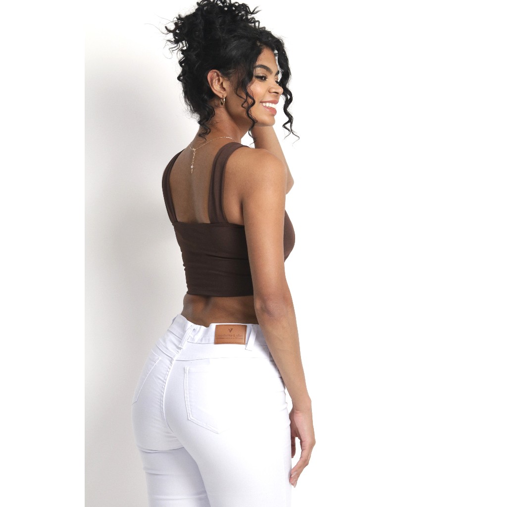 Produtos a pronta entrega para postagem imediata em até 24h ✓ Excelentes preços e ótima qualidade ✓ Fabricação própria ✓ Feito com muito carinho e capricho ✓ Mais de 100 mil estrelinhas e avaliações positivas ✓ Você não vai se arrepender de ter escolhido a Moderna & Slim! Compre e arrase! Cropped Suplex de Alças Grossas em Marrom: Confeccionado em tecido suplex com elastano, este modelo apresenta alças grossas para um ajuste confortável e seguro. O cropped marrom é uma adição essencial ao guarda-roupa, sendo perfeito para criar diversos looks e simbolizando autoestima. É uma peça associada a segurança, liberdade e juventude. Feito com tecido de excelente qualidade, proporciona conforto superior, ideal para uso frequente em casa ou durante o lazer devido à sua versatilidade e acabamento impecável. Detalhes Importantes: O cropped está disponível na cor marrom e nos tamanhos PMG GG. Ao adicionar ao carrinho, selecione o tamanho desejado e verifique cuidadosamente os itens escolhidos. Após a finalização do pedido, não será possível realizar alterações como escolha de itens, tamanho ou cor. A equipe operacional não possui acesso ao chat para realizar modificações. - Medidas aproximadas, sem esticar o produto e considerando as alças: Comprimento: 35 cm Largura: 35 cm (veste 36) - Tamanho P Comprimento: 36 cm Largura: 37 cm (veste 38) - Tamanho M Comprimento: 38 cm Largura: 39 cm (veste 40/42) - Tamanho G Comprimento: 40 cm Largura: 42 cm (veste 44/46) - Tamanho GG *O cropped possui elastano na composição, portanto, possui excelente elasticidade, (estica)! - Material: - Tecido: Suplex - Composição: 92%Poliéster 8% Elastano - Sem Bojo. Forrado. Não fica transparente - Cor: Marrom - Fotos dos anúncios: As fotos e vídeos são reais. As modelos são contratadas pela nossa marca, portanto, as peças retratam fielmente os nossos produtos. Modelo Veste P: Altura 1,77m | Busto 90cm | Cintura 65cm | Quadril 100cm | Peso 64kg | Tamanho Blusa P | Tamanho Calça 38