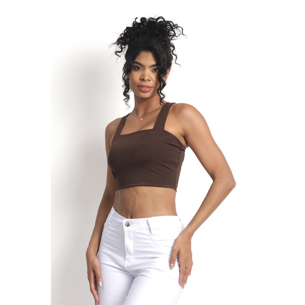 Cropped Marrom - Cropped Top Alça Grossa Suplex
