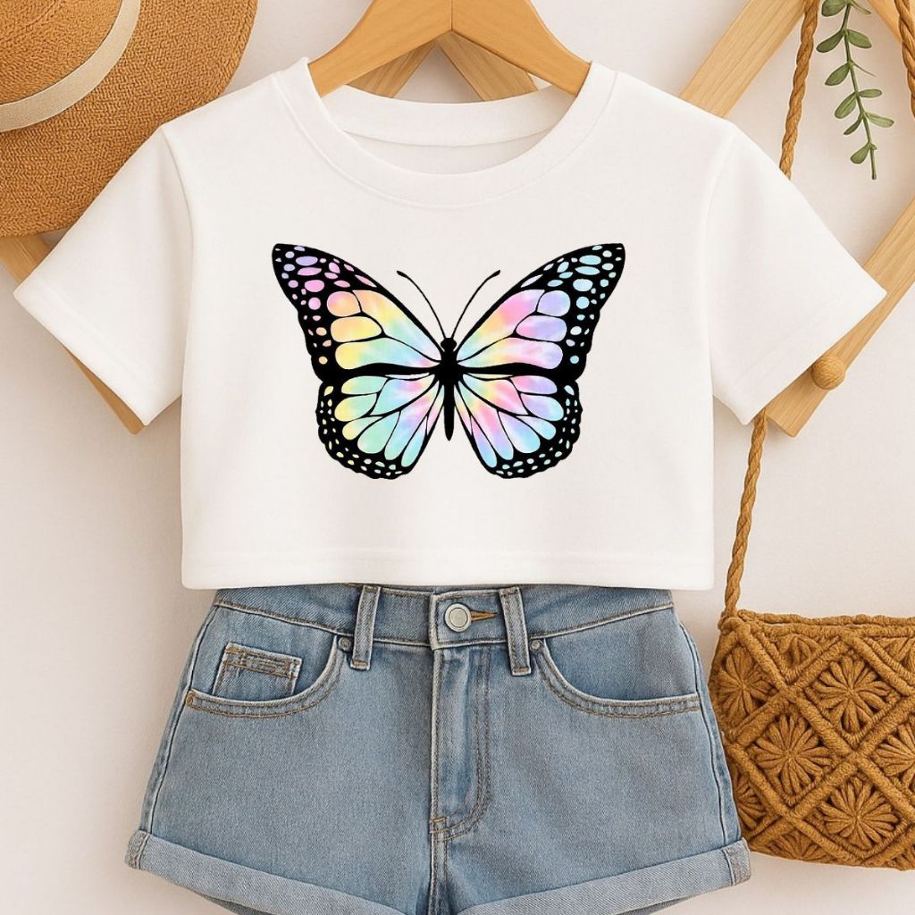 Cropped Meninas Infantil Borboletas Blusa Algodão Soltinha Oversized Moda Blogueirinha