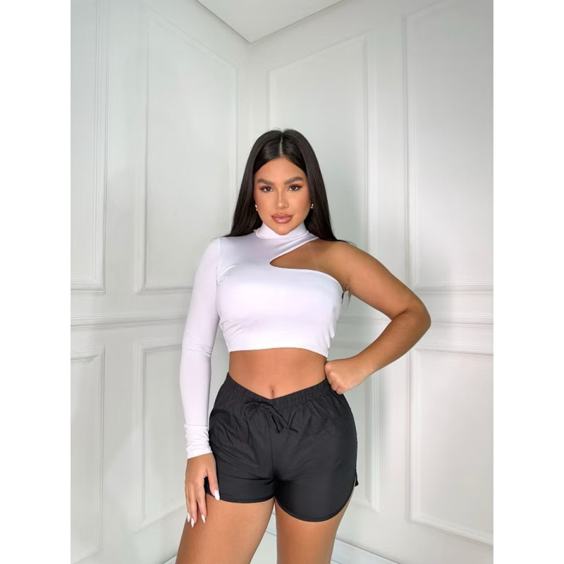 cropped ombro único detalhe lançamento verão manga longa