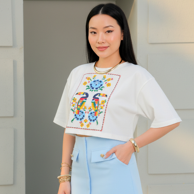 Cropped Oversized Estampa 2 Tucano Feminino 100% Algodão