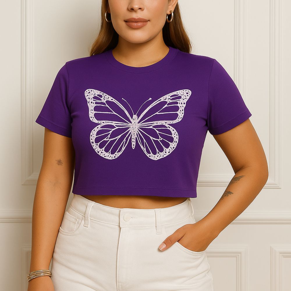 Cropped Oversized Feminina Estilo BorboletaTendência Streetwear Moda