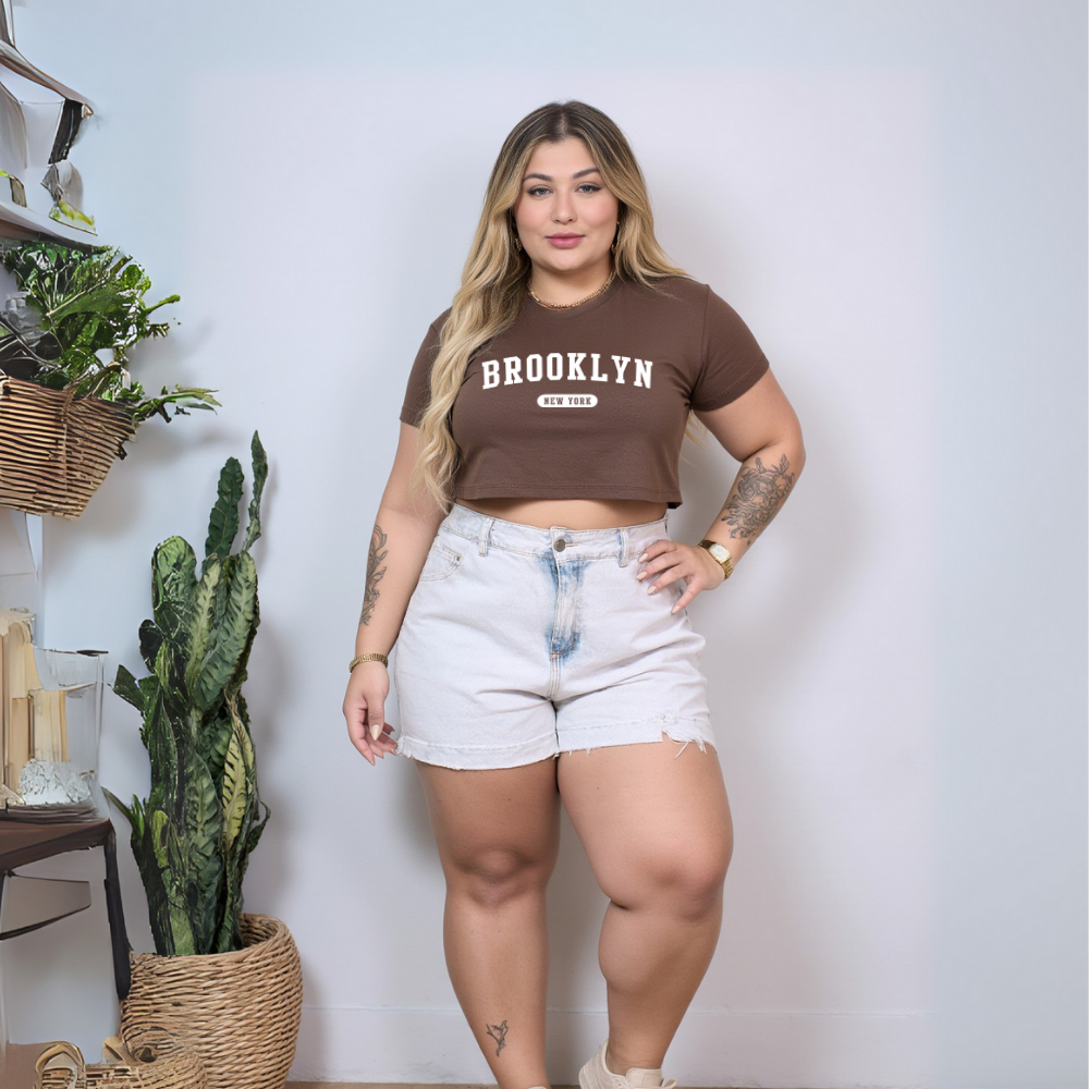 Cropped Plus Size Feminina Manga Curta - 100% Algodão "Brooklyn"