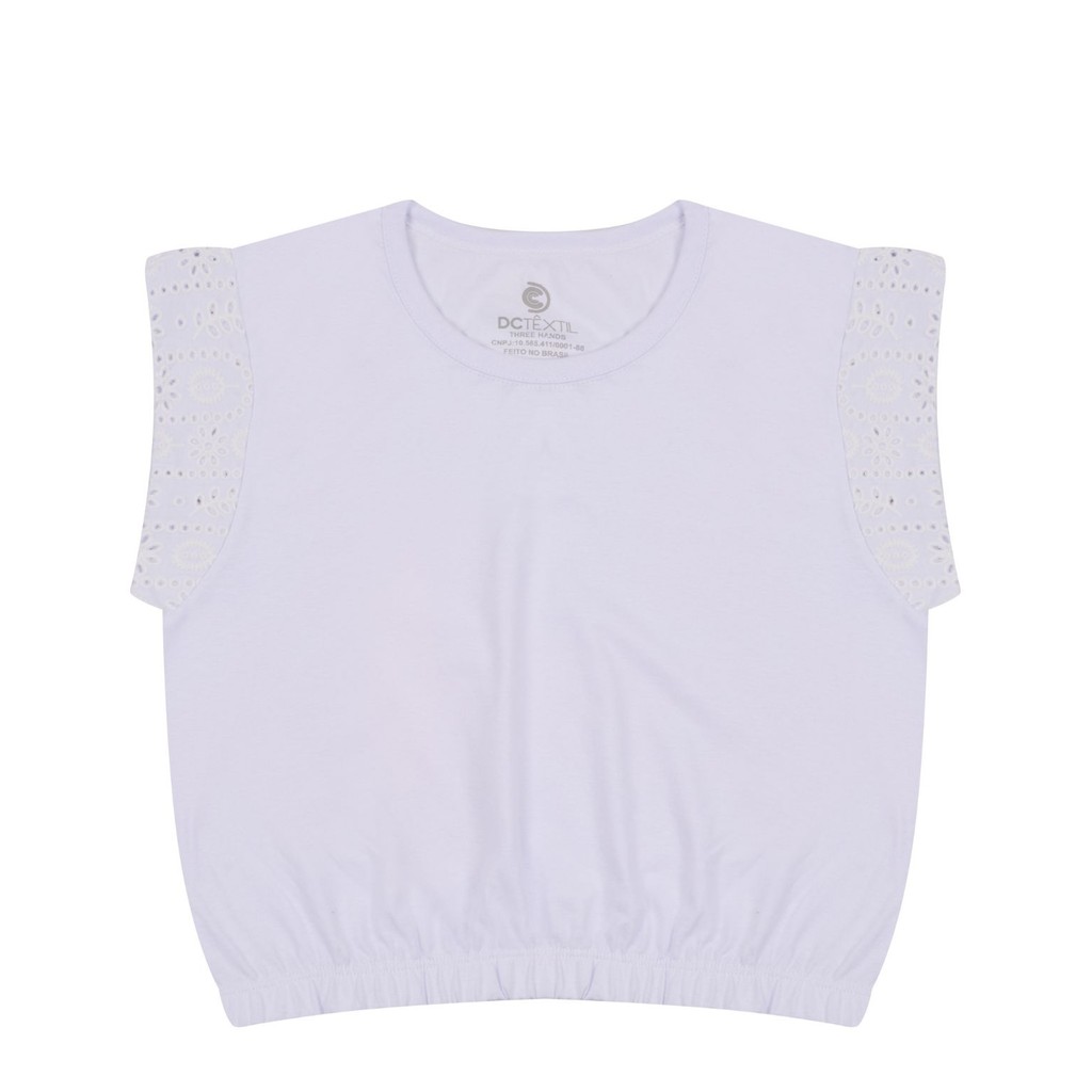 Cropped Plus Size Feminino Algodão Manga Laise Bordado Básico Confortável Moda Casual 25741-A