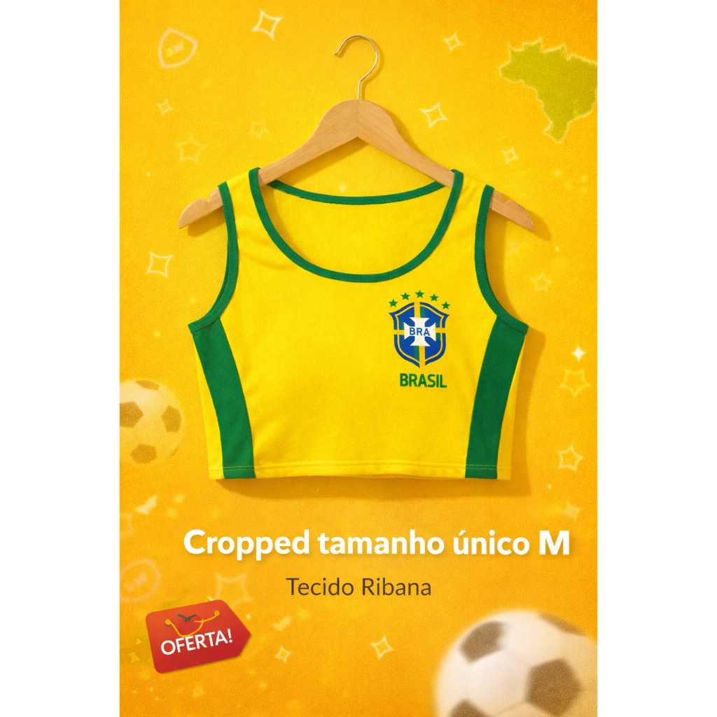 | Regatas Cropped do Brasil Feminina Ribana Copa Bandeira BORDADA | R$ 23,90 | 52% | 4.9/5 | 396 |