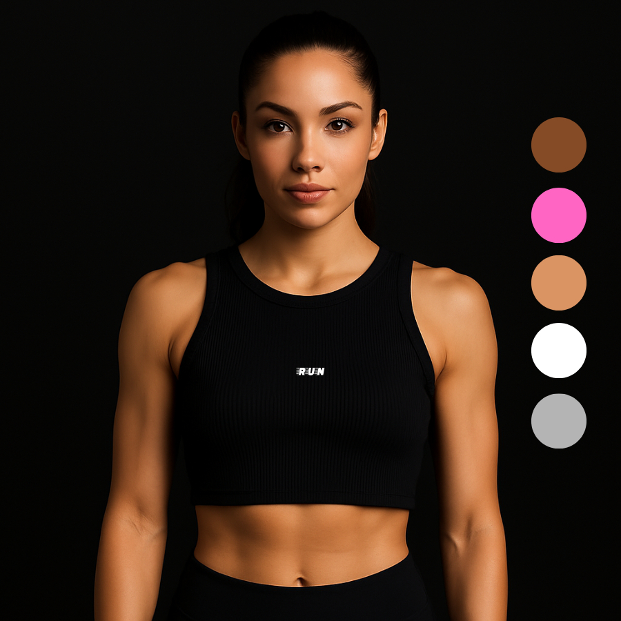 Cropped Regata Canelada Feminina Tecido Romantic RUN Training Fitness Casual Academia
