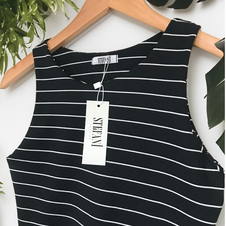 Cropped Regata Feminina Listrado Revel Frente & Verso Malha Ribana Premium