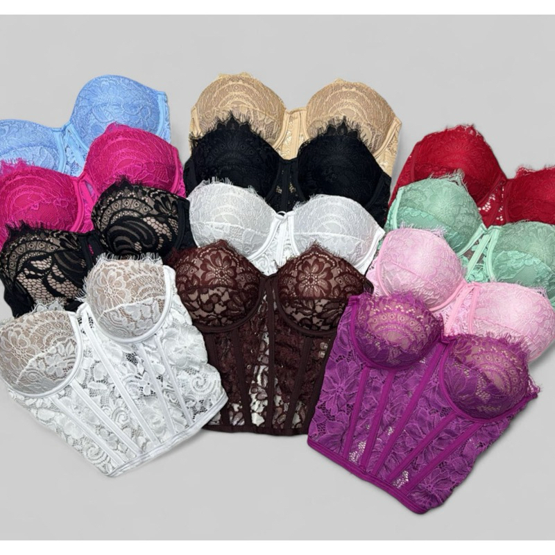 Cropped Renda Corselete Com Bojo Possui 5 Barbatanas Com efeito cintura Fina Premium
