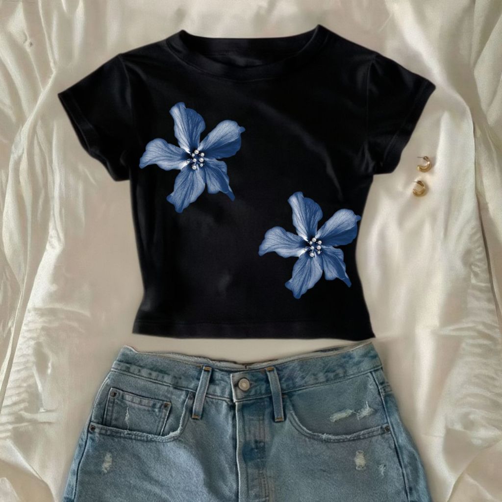 Cropped Slim Feminino Estampa De Verão Estilo Y2k Vintage Tecido Leve De Algodão