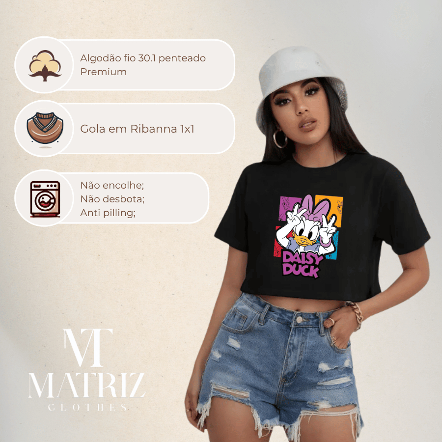 Cropped T-Shirt Feminina Daisy Duck Margarida Algodão Premium Oversized
