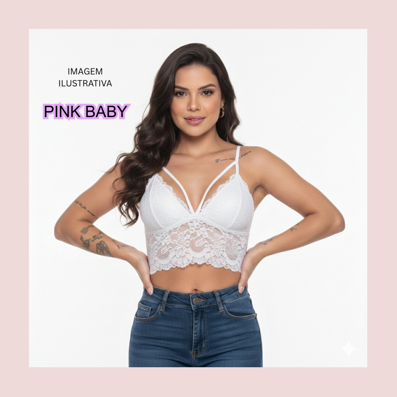 Cropped Top De Renda Tiras Dupla Alça Regulável Com Bojo SEMPRE NA MODA