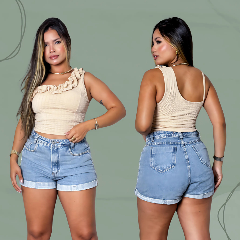 | Cropped top femenino babado com bojo e forro em tecido bubble este produto | R$ 29,60 | 60% | 4.8/5 | 2 |