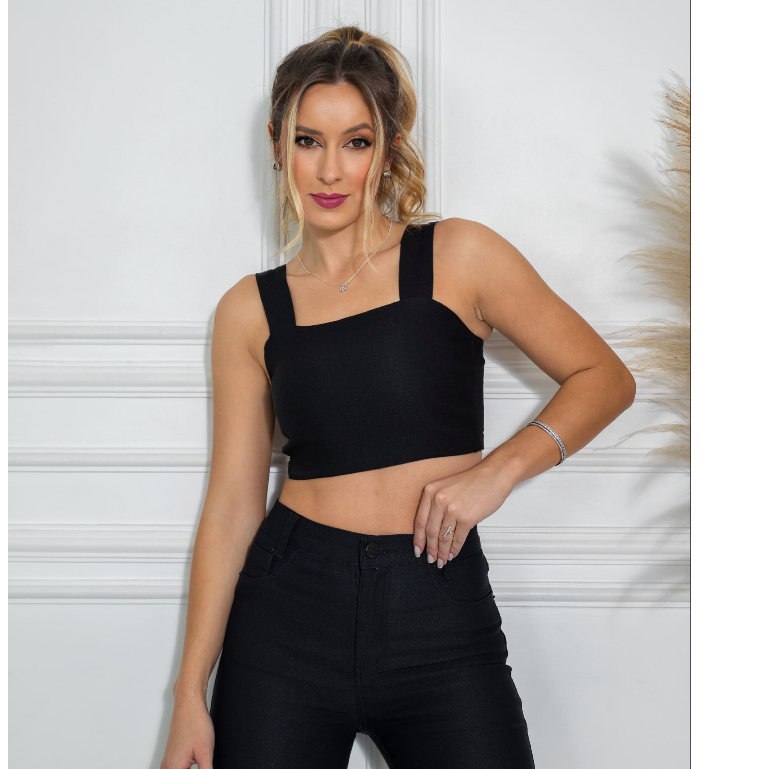 *Cropped Jeans com Tecido Especial que ESTICA* Produtos a pronta entrega para postagem imediata em até 24h ✓ Excelentes preços e ótima qualidade ✓ Fabricação própria. Feito com muito carinho e capricho ✓ Mais de 200 mil estrelinhas e avaliações positivas ✓ Você não vai se arrepender de ter escolhido a Moderna & Slim! Compre e arrase! - Cropped de Alças Jeans com tecido especial que estica no corpo. Confeccionado em tecido com elastano. Modelo de Alças. -A modelo veste M: Altura: 1,73 | Busto: 88cm | Cintura: 70cm | Quadril: 90cm | Manequim: 38 O tecido jeans da Moderna & Slim é composto por algodão, poliester e elastano e ESTICA, por isso, proporciona conforto e praticidade. - Além do cropped, você também pode adquirir a calça que também está disponível para venda em nossa loja. Busque por calça jeans calça jeans feminina e compre o seu look completo. Medidas do Top Jeans: - Medidas aproximadas, sem esticar o produto e desconsiderando as alças. Medidas em centímetros, cropped de frente. -Tamanho P: veste 34 largura 37 cm e comprimento 22cm (largura da peça esticada, fica em torno de 40 cm) -Tamanho M: veste 36 largura 39 cm - comprimento 22 cm (largura da peça esticada, fica em torno de 43 cm) -Tamanho G: veste 38 largura 41 cm - comprimento 22 cm (largura da peça esticada, fica em torno de 45 cm) *O cropped possui elastano na composição, portanto, possui excelente elasticidade! - Material: - Tecido: Jeans - Composição: 73% algodão. 24% poliester. 03% elastano - Sem Bojo. Não tem zíper pois estica. - Elastico na parte inferior da peça. - Não fica transparente - Cor: Jeans preto. - Importante: Disponível nos tamanhos PMG. Selecione o tamanho desejado ao seu carrinho e faça sempre a conferência dos itens. Com o pedido finalizado, não é possível alterar informações como, por exemplo, itens escolhidos, tamanho ou cor. A equipe operacional, não tem acesso ao chat, portanto, não é possível modificações. - Fotos dos anúncios: As fotos e vídeos são reais. As modelos são contratadas pela nossa marca, portanto, as peças retratam fielmente os nossos produtos.