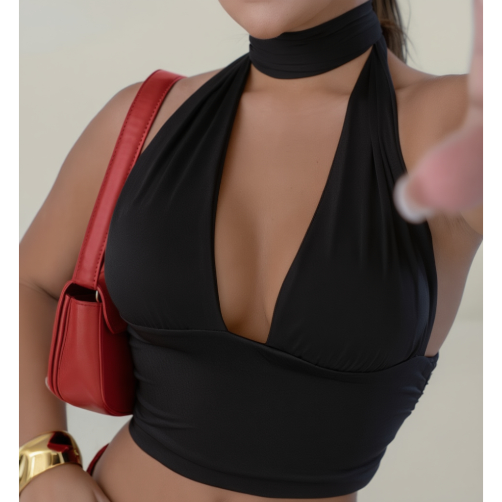 Cropped Top Suplex Premium com Amarração Multiformas Blusa Gringa Decotada Sexy Elegante para Festa