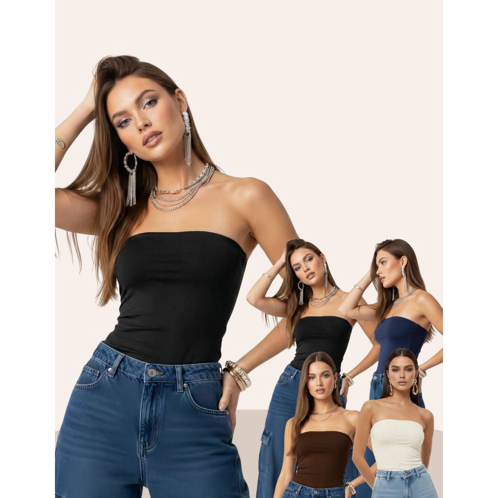 Cropped Top Tube Faixa Suplex Premium Tomara Que Caia Feminino De Moda Blogueira Tubinho Básica
