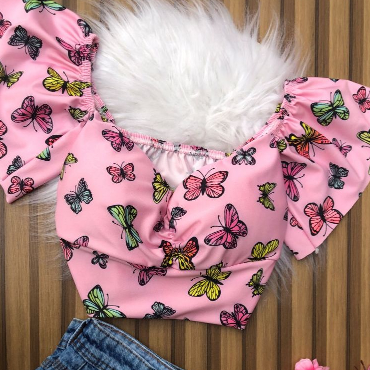 croppeds ombro à ombro estampados / top com mangas para o verão / croppeds estampados com bojo