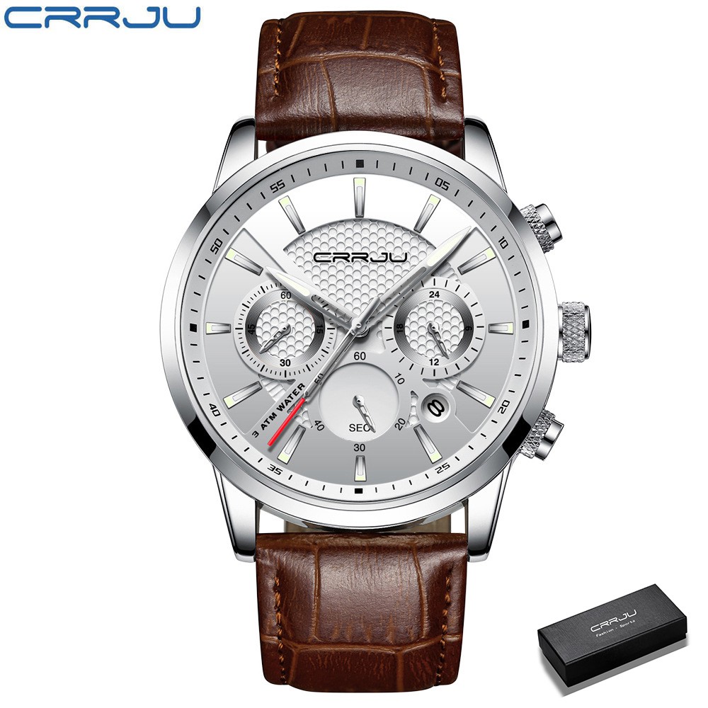 CRRJU Casuais Relógio De Quartzo Dos Homens De Couro Top Marca De Luxo Negócio Esporte À Prova D 'Água Data 2212l