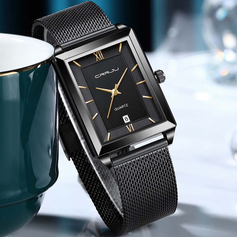 CRRJU Crju Relógio Masculino Esportivo De Quartzo Com Mostrador Quadrado De Aço Inoxidável Vintage À Prova D'água CJ97MX
