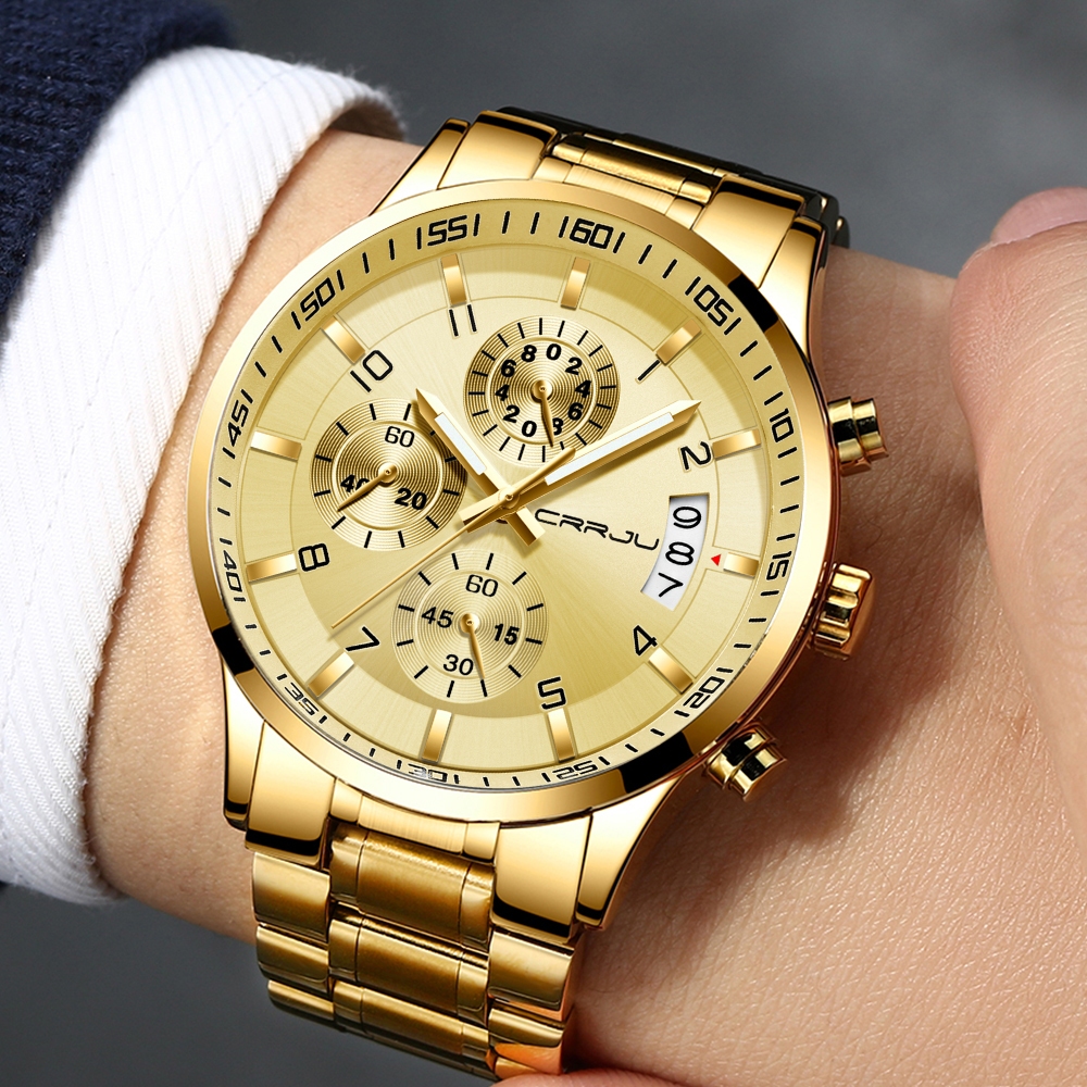 CRRJU Marca Original Moda Genuína Relógio Cronógrafo De Aço Inoxidável Para Homens Negócios Todo À Prova D'água Data Aut