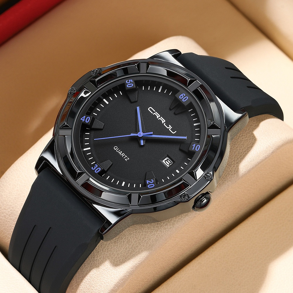 Bem-vindo à nossa loja ✅⌚Entrega: Todos os pedidos serão enviados dentro de 24h. ✅⌚Pós-venda: Melhor solução para seus problemas. ✅⌚Cada fã, amigo e cliente é muito bem-vindo. ✅⌚Espero que aproveite suas compras. —————————————————————— 💎⌚Característica: -★⌚À prova d'água 3ATM / 30M★⌚(Não Opere os botões do relógio na água e não use o relógio em contato com água quente). -★⌚Alta qualidade★:⌚ 100% novo vidro mineral de alta dureza (anti-risco), estojo de alta qualidade durável. -★⌚Ideias de presente: relógios são ótimos presentes, aniversários, aniversários de amigo, amados, dia das mães, presentes de formatura, presentes de dia dos namorados, ou como presentes para trabalho e festas。 💎⌚Especificações: - Tamanho do Mostrador(Diâmetro):45mm Espessura do Mostrador: 10mm - Espessura do Mostrador: 10mm - Tamanho da alça (comprimento): 24 cm - Tamanho da alça (Largura): 18mm 💎⌚Descrição do produto: Marca: CRRJU -Número Do modelo: 5030 X Material da caixa: liga -Material Da cinta: Silicone Gênero da moda: Homens Estilo: Esporte, Casual, Negócios, Moda Exibição: Analógico Alimentado por bateria Material frontal -material frontal: Mineral 💎⌚Os produtos incluem produtos Relógios genuínos -100% de relógios genuínos [sem Caixa] 💎⌚Tempo de garantia:Não A Loja faz o melhor para resolver o problema para você】 —————————————————————— -★⌚Serviço: 1.Somos o fabricante original. 2.Todos os produtos são 100% novos e originais. 3.Estamos empenhados em oferecer-lhe produtos com a mais alta qualidade com preço razoável. 4.Loja dedicada a oferecer uma boa experiência ao cliente! 5.A satisfação do cliente é a busca vital para nós como sempre.