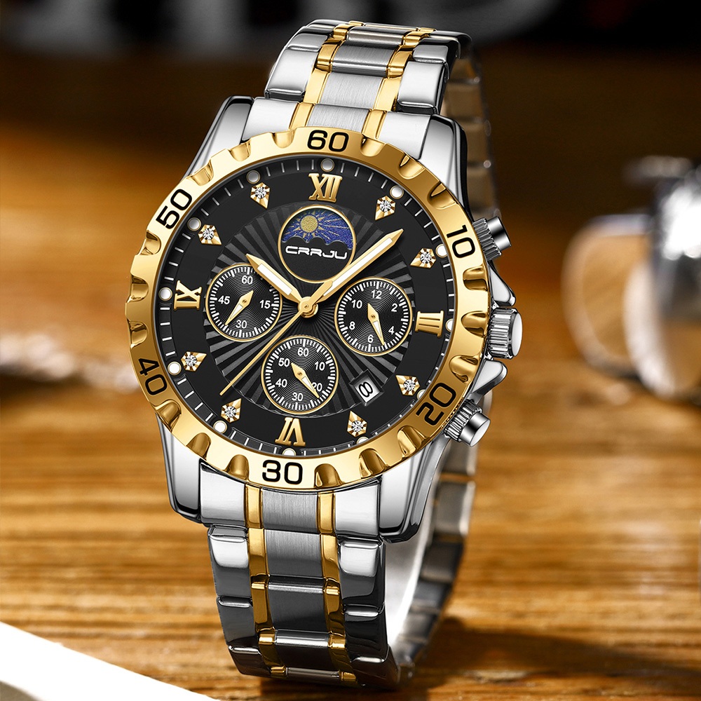 CRRJU Relógio De Quartzo À Prova D'água Marca Top Luxury Men's Keeping Time Multifuncional Empresarial 2320