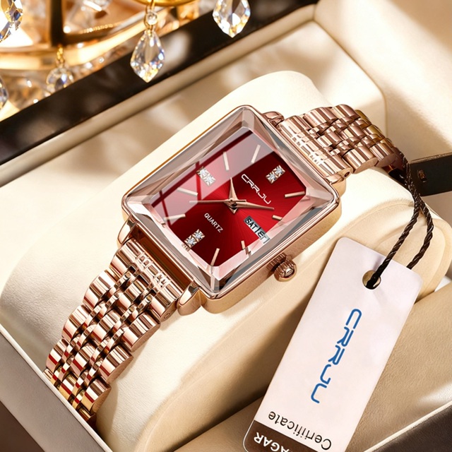 CRRJU Relógio feminino de luxo quadrado de aço inoxidável de quartzo à prova d'água 5012 X