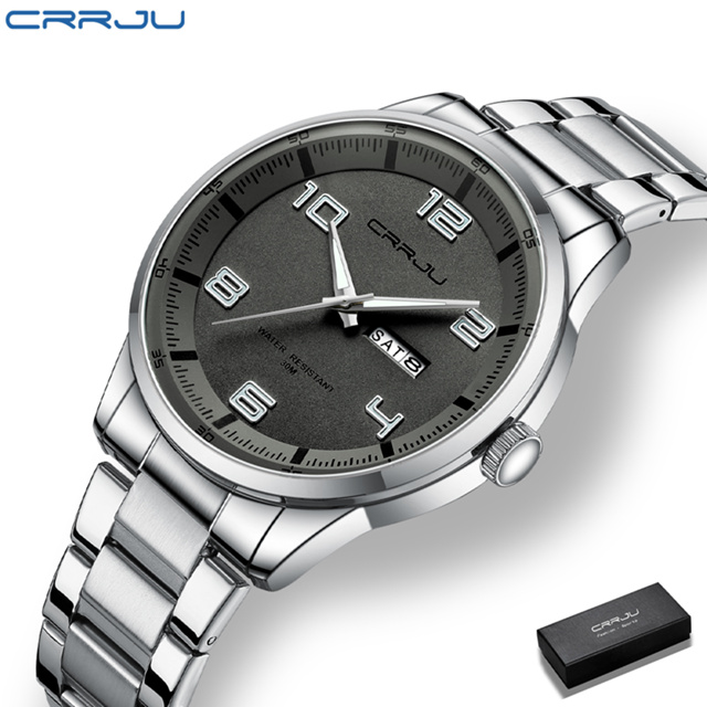 CRRJU relógio masculino a prova d água Top Luxo Brilhante Moda Simples Negócios Design exclusivo Pulseira de aço inoxidável 5005