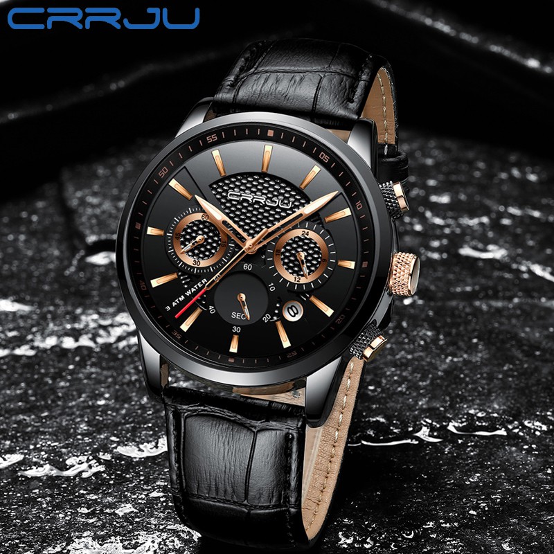 CRRJU Relógio masculino casual de couro Marca de luxo Esportes à prova d'água Data Cronógrafo 2212