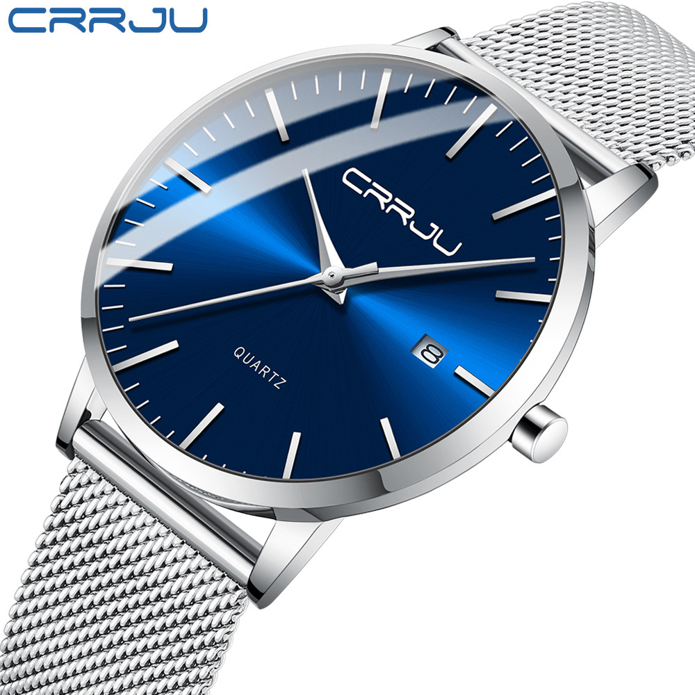 CRRJU Relógio Masculino De Aço Inoxidável Ultrafino Moda Casual Negócios Esportes Quartzo À Prova D'água 2172 XM