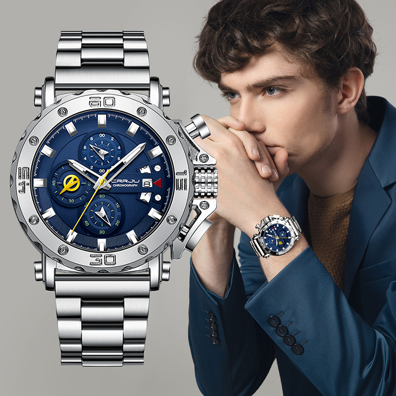CRRJU Relógio Masculino De Quartzo Esportivo Com Ponteiros Luminosos Em Aço Inoxidável 2294X