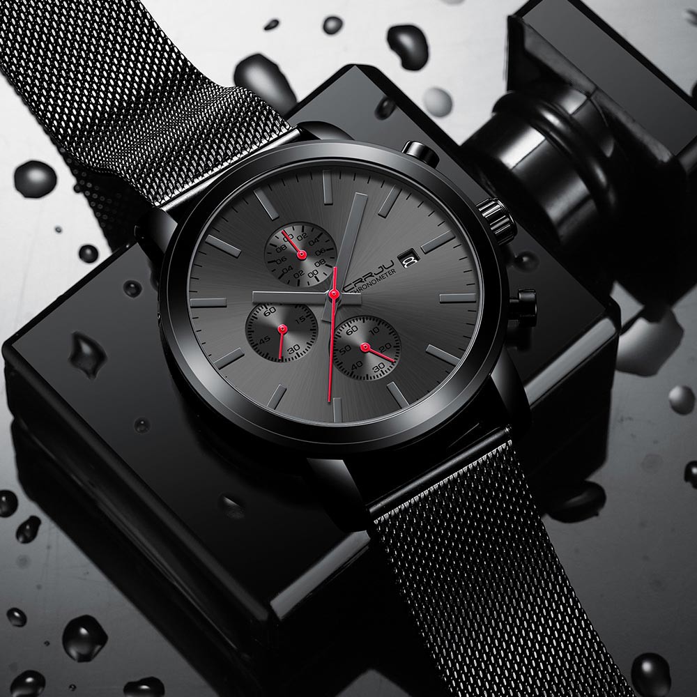CRRJU Relógio masculino marca de luxo preto esportivo moda à prova d'água cronógrafo 2287M