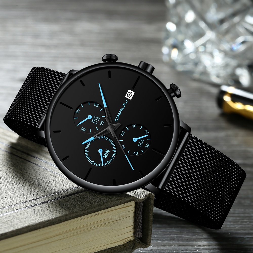 CRRJU Relógio Masculino Multifuncional Mostrador Moda Quartzo Aço Inoxidável Impermeável 2268 X