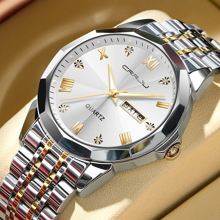 CRRJU Relógio Masculino Nova Marca Original Ponteiros Luminosos De Aço Inoxidável Genuíno Moda Simples Negócios De Lazer Quartzo Analógico À Prova D'água 5023 X