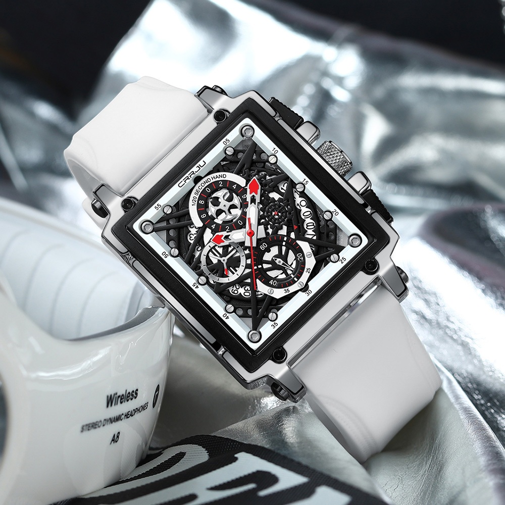 CRRJU Relógio Masculino Original À Prova D'água Com Mostrador Quadrado Pulseira De Silicone Cronógrafo Luminoso Quartzo