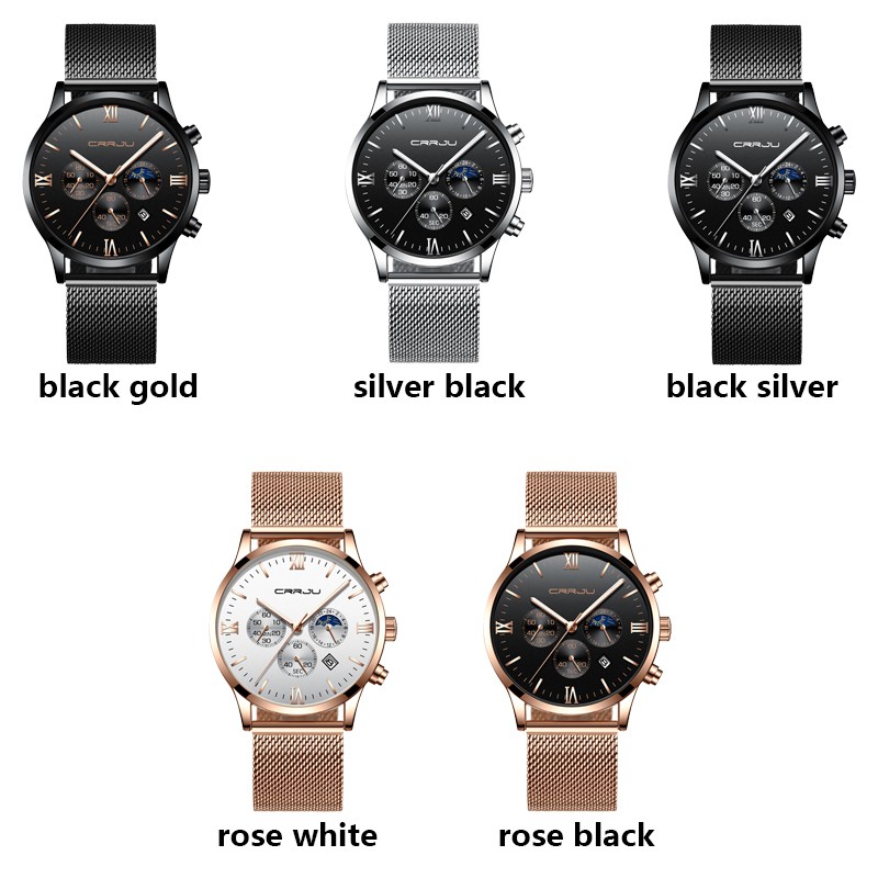 CRRJU Relógios Masculinos Retrô Casuais De Negócios Em Aço Inoxidável Quartzo À Prova D'água 2159 XM
