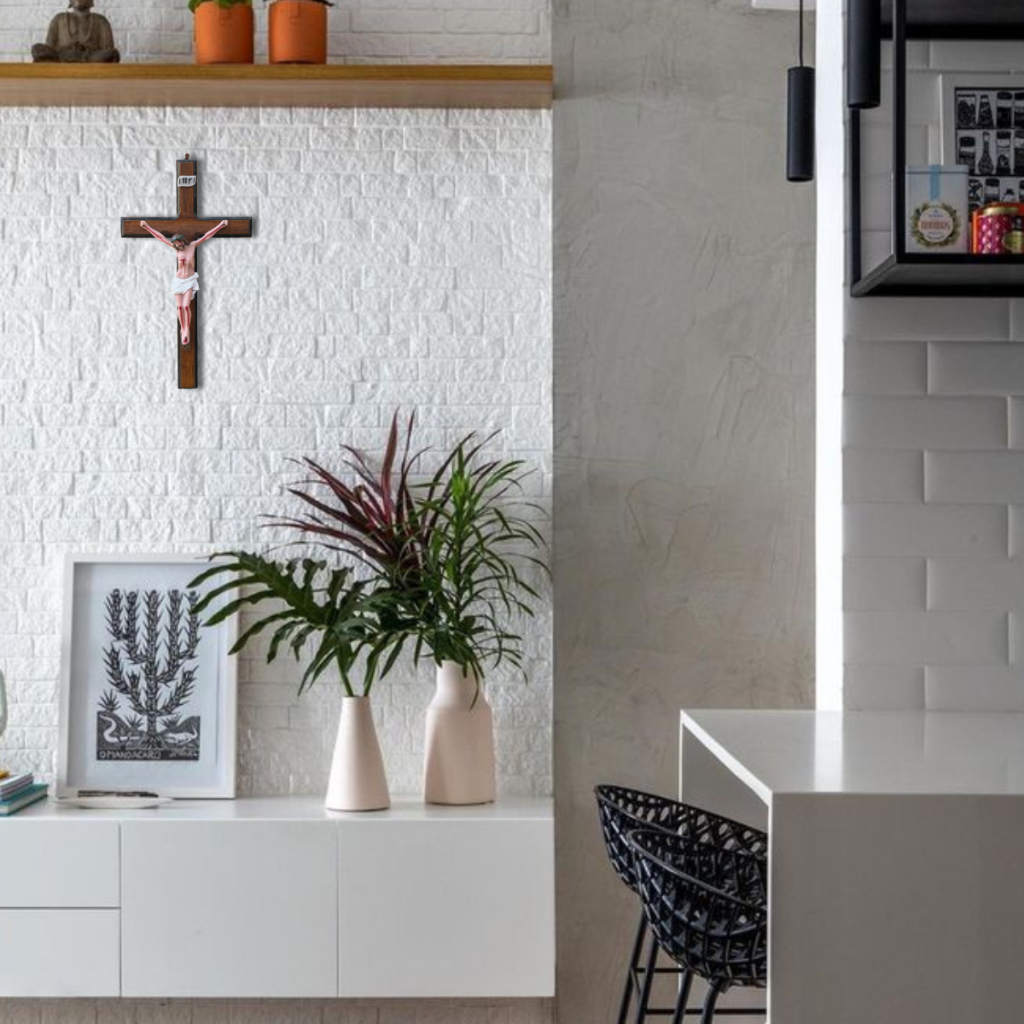 Crucifixo De Parede Em Resina E Madeira Jesus Cristo 27,8 cm
