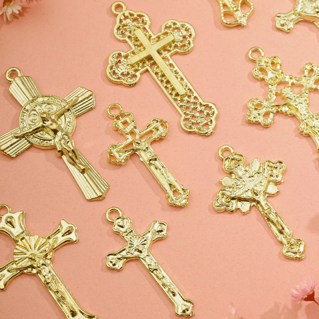 Crucifixo Para Terço Dourado Alta Qualidade Montagem Para Terços Asas da Fé