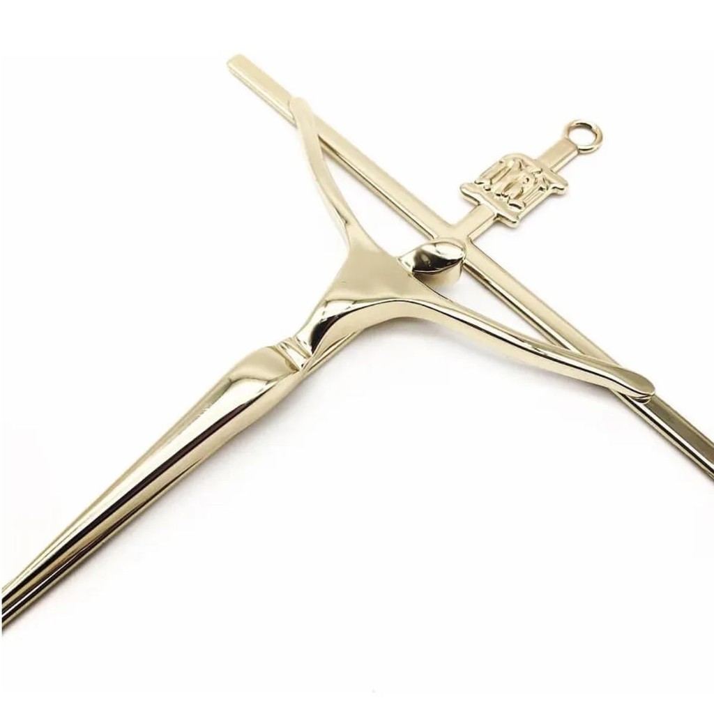 Crucifixo Parede Metal Dourado com Jesus para Escritório, Consultórios, Salas, Quartos