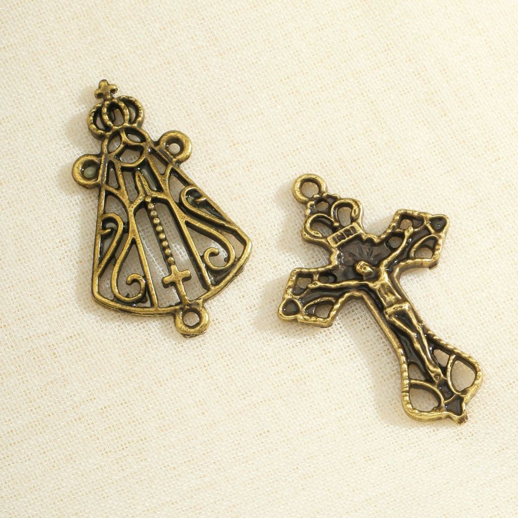 Crucifixos + Entremeios Nossa Senhora Aparecida Ouro Velho Prata e Dourado Para Terço