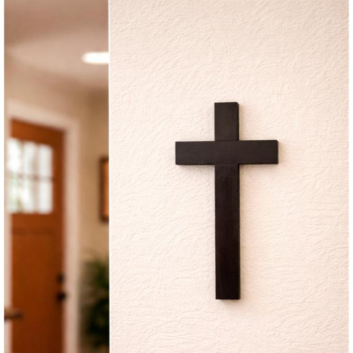 Cruz de Madeira Marrom para Parede ou Porta - Crucifixo Minimalista 15,5cm
