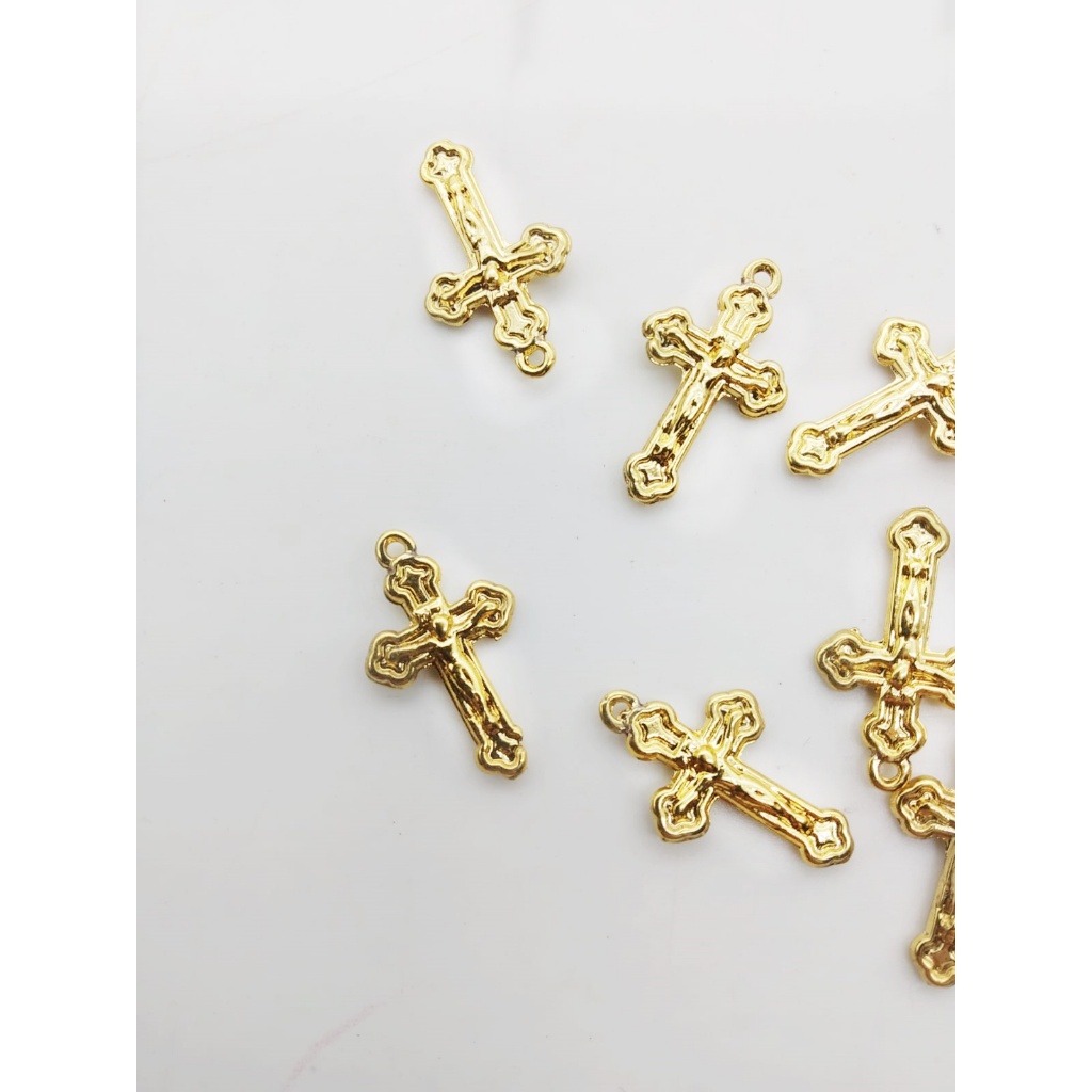 Cruz para terço pulseira - Banho Dourado Medida: 1,9X1,1CM =====>>> PACOTE COM 05 e 10 PEÇAS - MATERIAL: LIGA METÁLICA