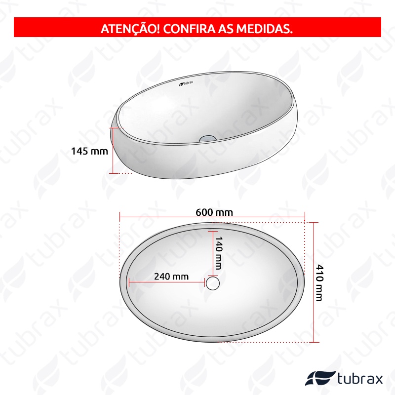 Cuba Banheiro Lavabo Em Cerâmica Louça Branca Oval 60 x 41 x 14,5 cm Apoio Tubrax - BAB0001