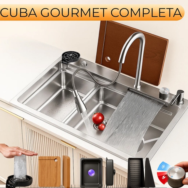 Cuba Cascata Gourmet Inox Premium com Acessórios Yab aparece na subcategoria Pias e Torneiras de Água (de Casa e Construção) na Shopee Brasil por R$ 499,99 (55% de desconto sobre o preço original de R$ 1.111,09). Avaliado em 4.9/5 pelos compradores e 4 unidades vendidas, este produto se destaca pelo excelente custo-benefício.