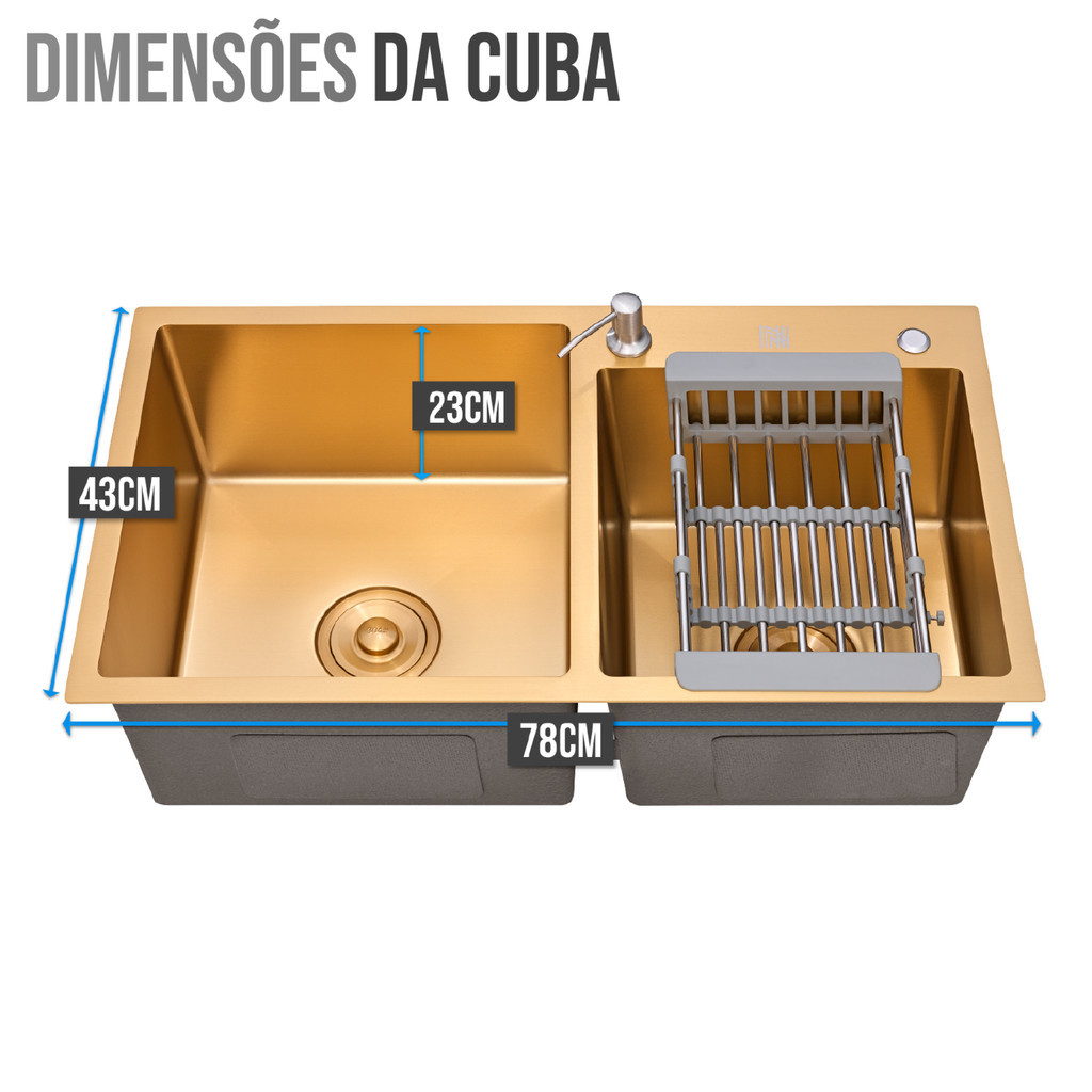 Cuba Cozinha Gourmet Pia Aço Inox Dupla Quadrada Dourado Gold
