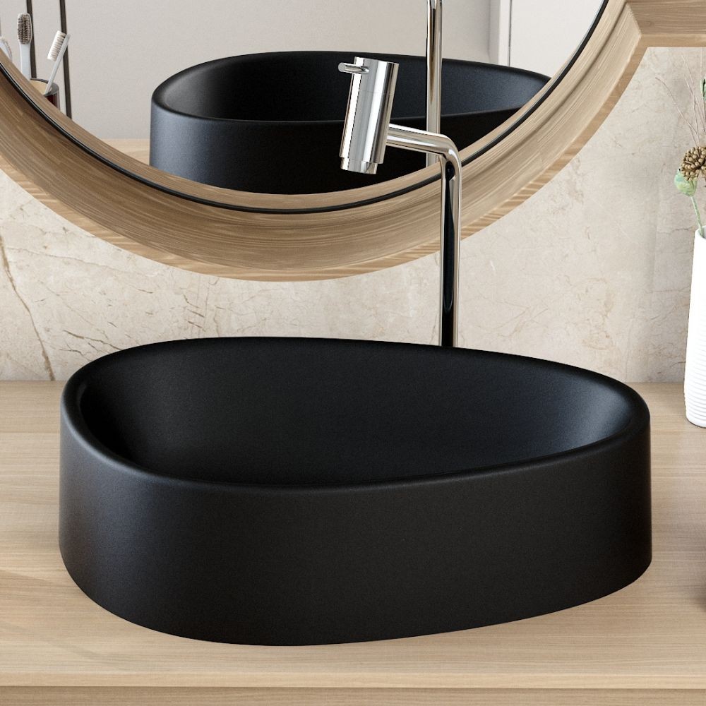 Cuba de Apoio Gota Para Banheiro Lavabo C01 BG43W Preto Matte Fosca - Lyam
