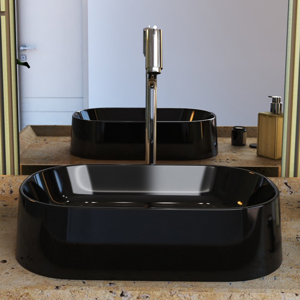 Cuba de Apoio Oval Para Banheiro Lavabo Laila C01 O42W Preto - Lyam