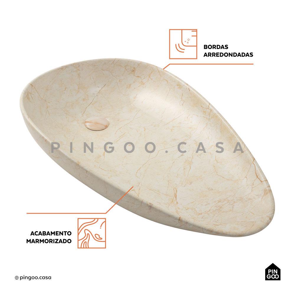 Cuba De Apoio Para Banheiro Gota Slim Louça Cerâmica 76,5 cm Pingoo - Marmorizado Gold