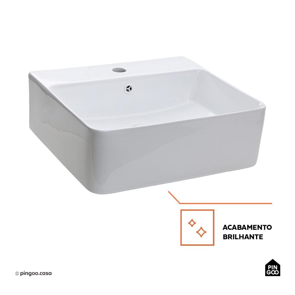 Cuba de Apoio para Banheiro Retangular Louça Cerâmica Jaspe Pingoo - Branco