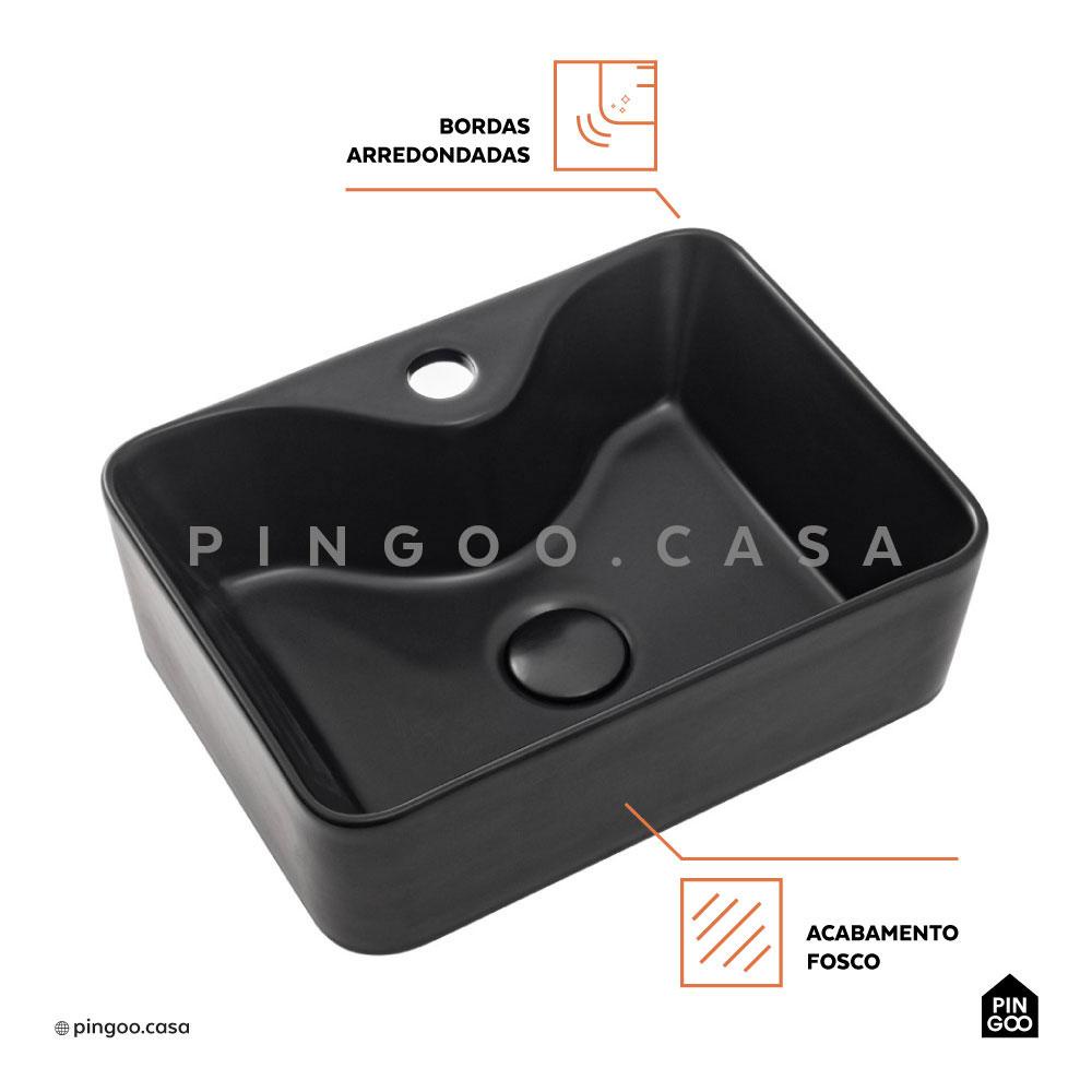 Cuba De Apoio Para Banheiro Retangular Slim Louça Cerâmica 40 cm Cornalina Pingoo - Preto Fosco