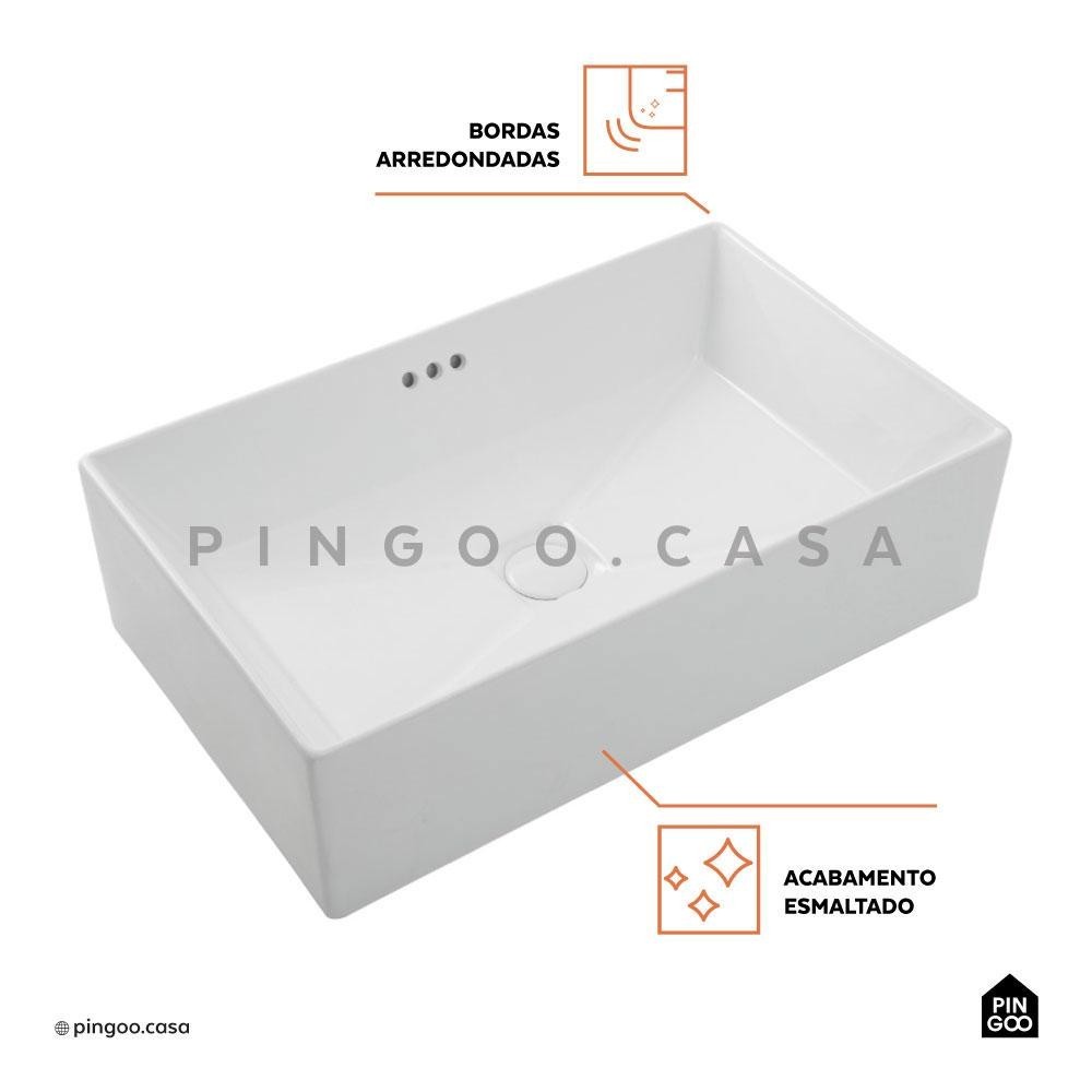 Cuba De Apoio Para Banheiro Retangular Slim Louça Cerâmica 60 cm Lolita Pingoo - Branco